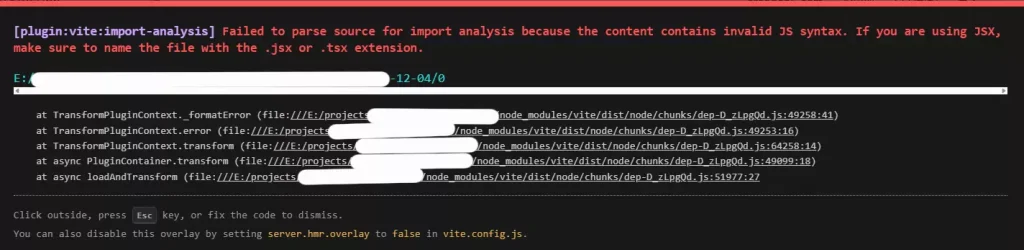 Failed to parse source for import analysis because the content contains invalid js syntax.
